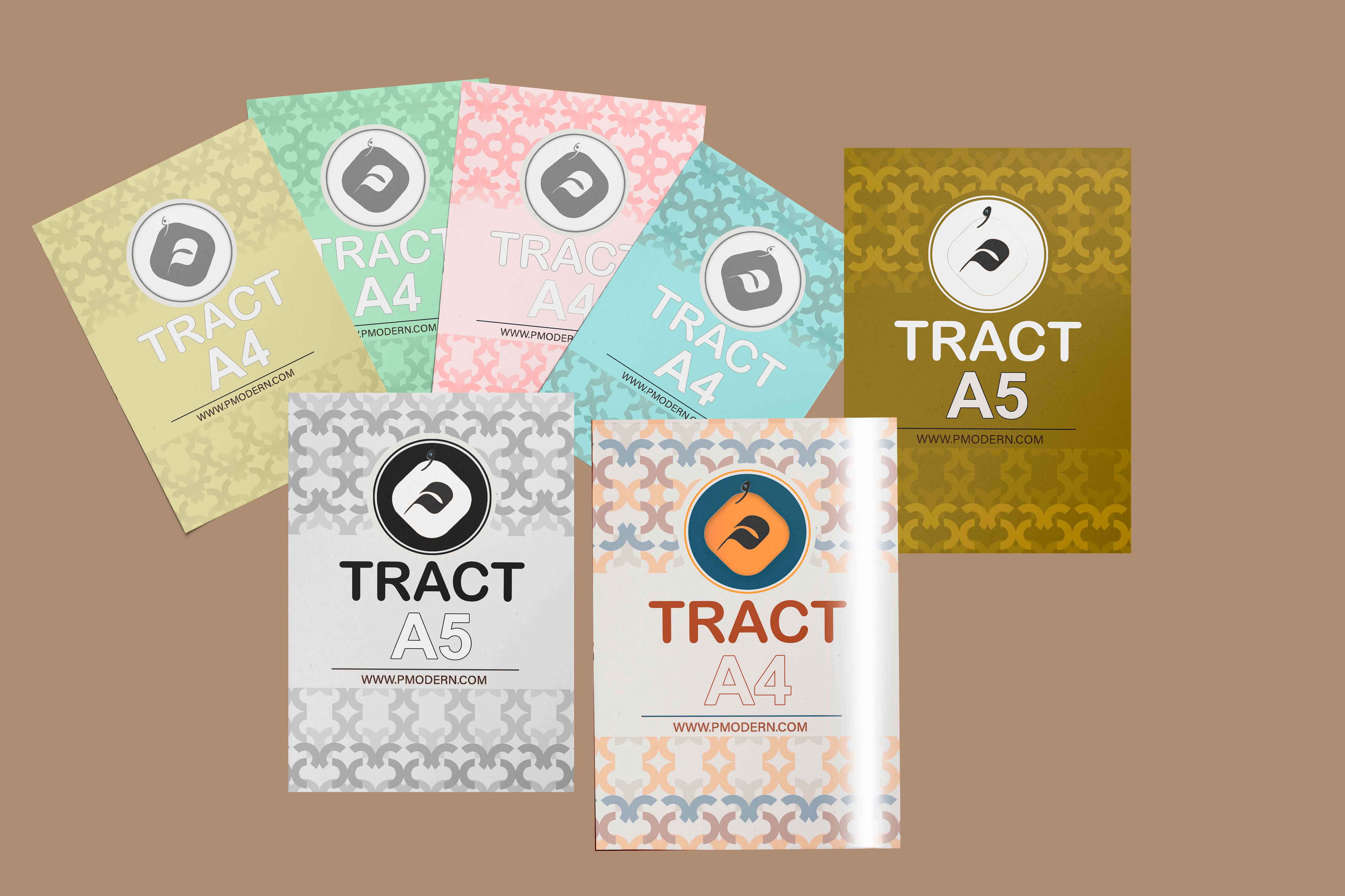 تراکتها نقش مهمی در تبلیغات شرکتها دارند به همین منظور چاپ دیجیتال مدرن بخشی را به صورت اختصاصی برای سفارش تراکت در نظر گرفته تا مشتریان مدرن بتوانند با کمترین اطلاعات سفارش خود را ارسال کنند. تراکت معمولا برگهای چاپی و تا نشده است که برای تبلیغات، اطلاع رسانی رویدادی خاص ، اجرای کنسرت، افتتاح پروژه و ... مورد استفاده قرار میگیرد. تراکتها معمولا در اندازه A5 ، به صورت یکرو و با توجه به استفاده کوتاه مدتی که دارند، روی کاغذ با گرماژ پایین چاپ میشوند تا برای مشتری مقرون به صرفه باشد اما این یک قانون نیست و شما میتوانید تراکت خود را در اندازههای متفاوت، به صورت دورو و روی گرماژ سنگین و با کیفیت بالا چاپ کنید.